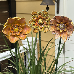 April showers, bring May Flowers. You don't have to have a green thumb to create this decorative flowers. They're fun to place in your patio planter or an outdoor bed. We'll be using clay slabs and texture tools to build layers of petals. The rods to display them are included with the project. There's six spaces available in each session.